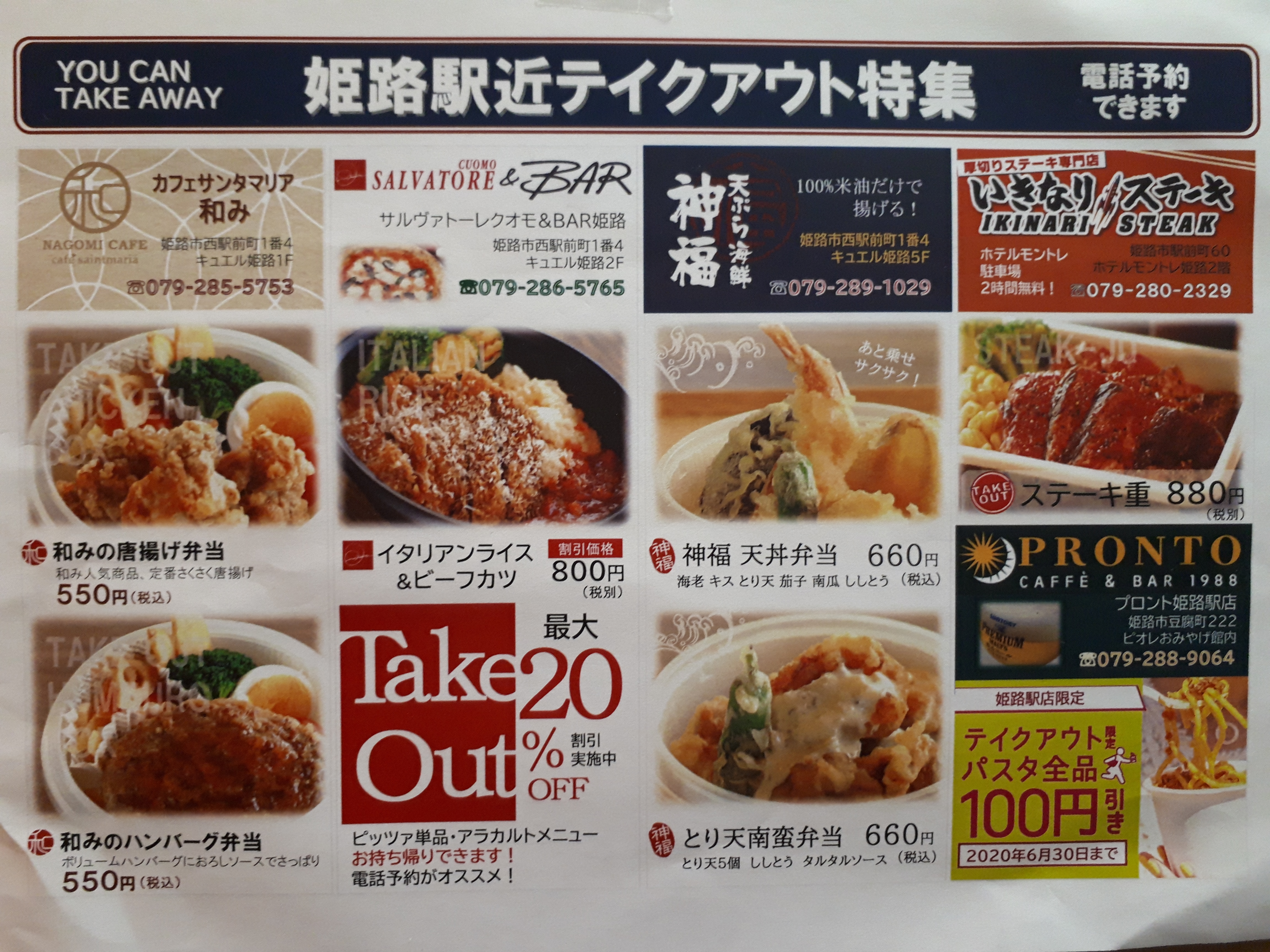 姫路市街でも多数のおいしいお店がテイクアウトをされてますが、今回その一部をご紹介させていただきます。